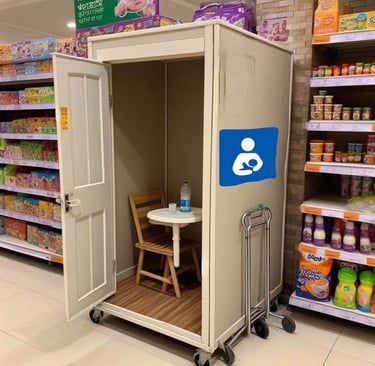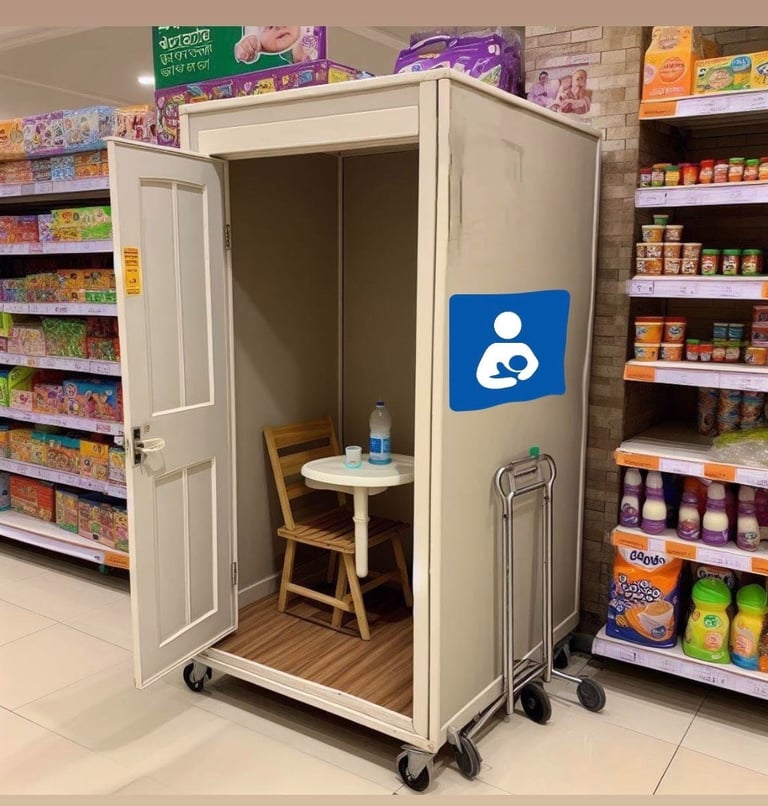 I had an idea to partner with a big retail chain to create a space for breastfeeding mothers. The idea is simple- 𝐚 𝐬𝐦𝐚𝐥𝐥, 𝐟𝐨𝐥𝐝𝐚𝐛𝐥𝐞 𝐫𝐨𝐨𝐦 made with cards, plastic boards, or even cloths; that can be easily set up when needed. This 4ft by 4ft space will have a chair, a small table, and necessary essentials like tissues and water. By placing it near the baby products section, the retail chain can 𝐚𝐭𝐭𝐫𝐚𝐜𝐭 𝐦𝐨𝐫𝐞 𝐜𝐮𝐬𝐭𝐨𝐦𝐞𝐫𝐬 𝐚𝐧𝐝 𝐛𝐨𝐨𝐬𝐭 𝐬𝐚𝐥𝐞𝐬. Moreover, this will show that they care about families.